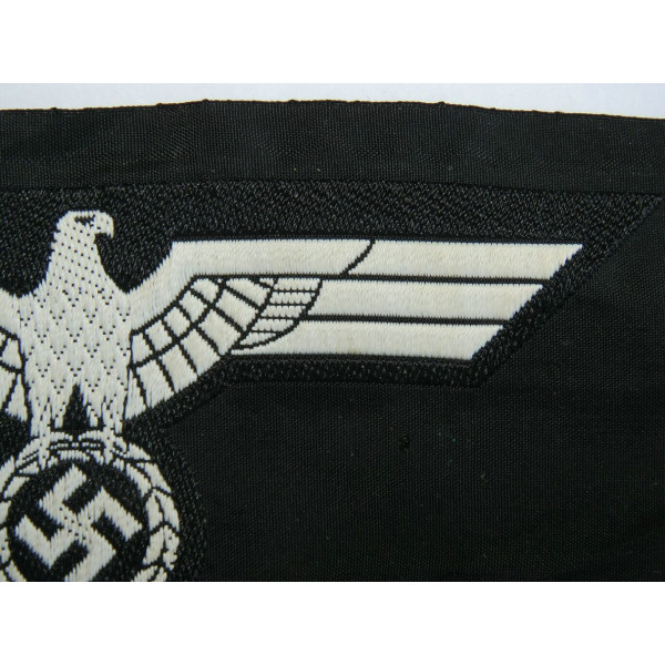 Early-pattern Wehrmacht Panzertruppe breast eagle, manufactured using Jacquard machine-weaving technology commonly associated with the BeVo factory. The eagle is unworn and has never been sewn onto a uniform. Woven in white thread on a black background, typical for pre-1940 production.