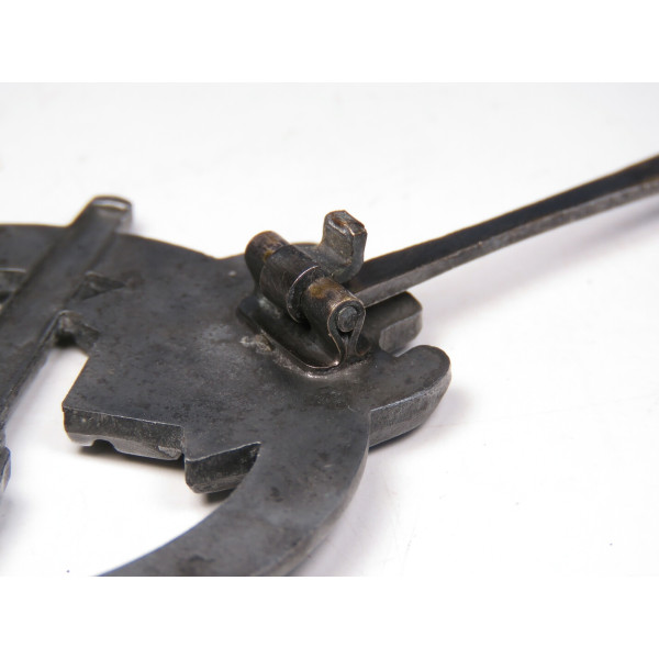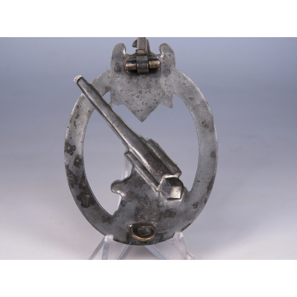 Original Army Anti-Aircraft Badge (Flak-Kampfabzeichen des Heeres), awarded to Wehrmacht personnel for air defense service. Made of zinc with a natural grey tone and no finish. The reverse is marked L21, identifying Förster & Barth, Berlin as the maker. Very good condition overall, with an attractive patina and minor age marks on the reverse and barrel area.