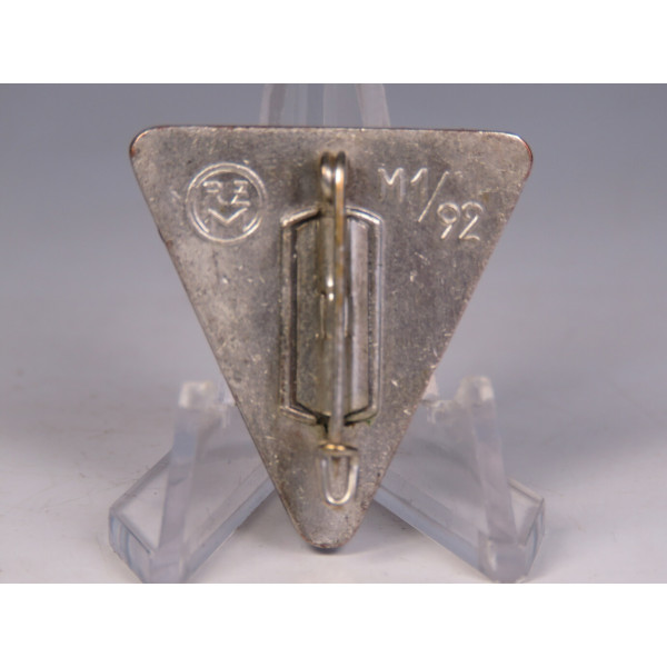 Marked RZM 72, manufacturer Fritz Zimmermann, Stuttgart. Typical triangular design with black enamel and organization symbol.