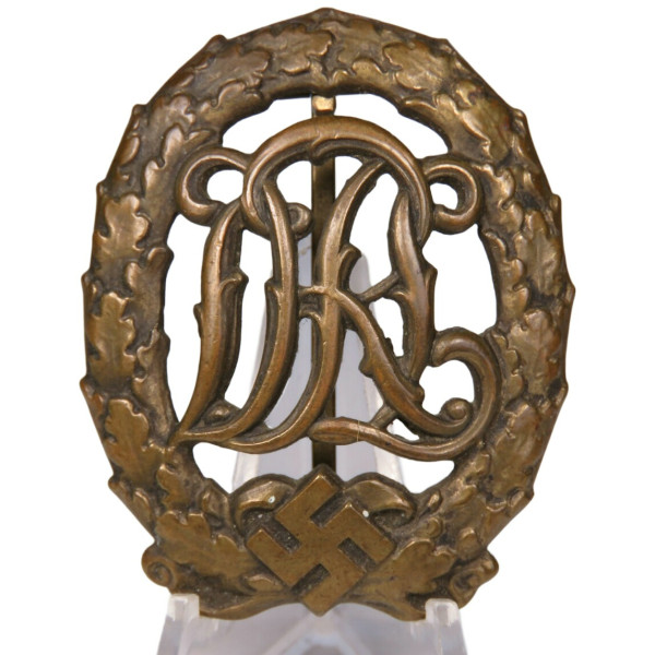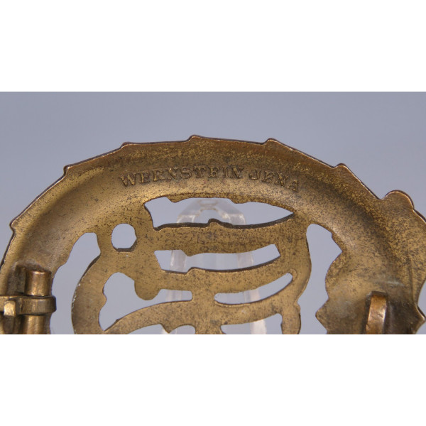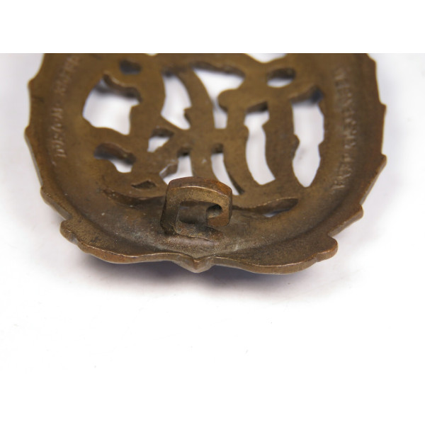 Bronze DRL (Deutsches Reichssportabzeichen) sports badge produced by Wernstein Jena, marked on the reverse. Made of bronze alloy with attractive patina and signs of wear. A collectible prewar example.