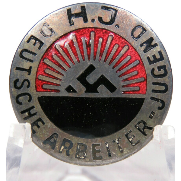 Early version of the Hitler Youth membership badge, made of colored metal without gilding. Clearly marked on the reverse: GES. GESCH.. In mint condition, with superb natural patina that is not fully captured in the photo. Enamel is flawless, overall preservation is outstanding