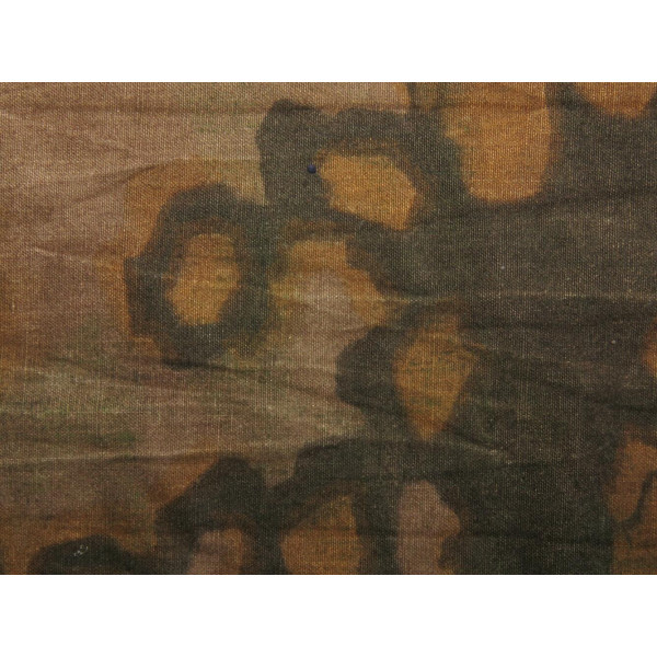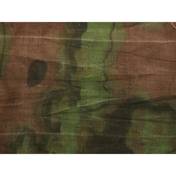 Fabric with the classic Eichenlaubmuster ("Oak Leaf") camouflage pattern, printed in lighter tones on thinner material than standard examples. Likely intended for garments or lightweight field garments. Colors remain vivid, and the pattern is clearly defined. Possibly a late-war production. A unique Waffen-SS camouflage fragment with uncommon characteristics.