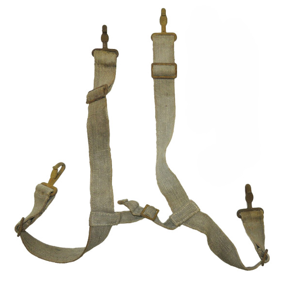 Saksalainen MG34/42 ampumatarvikekotelo H-hihnasarja, sodan puoliväli, 1942 Tehdasvalmisteinen ampumatarvikekotelon kantosarja, joka koostuu ainakin kahdesta erityyppisestä sodan puolivälissä käytetystä hihnamateriaalista, väri feldgrau. Kaikki ompeleet on tehty tehtaalla, ne ovat täysin ehjät ja niiden koko on säädettävissä. Keskihihnassa on selvä leima "HCY42", mikä vahvistaa valmistuksen vuonna 1942. Metalliosat ovat valitettavasti pahasti ruostuneet, ja vain kaksi jousikuormitteista pidikettä toimii kunnolla. Loput kaksi kiinnikettä ovat takertuneet ja vaativat kunnostusta, jotta ne saataisiin jälleen liikkeelle. Huomionarvoista on, että hihnassa itsessään on vain vähän ruosteen aiheuttamia värjäytymiä. Tätä esinettä käytettiin itärintamalla, ja se löydettiin säilyneeltä maatilalta läheltä Tannenbergin linjaa (Tannenbergstellung), jossa käytiin rajuja taisteluita Narvan taistelussa vuonna 1944 Virossa.