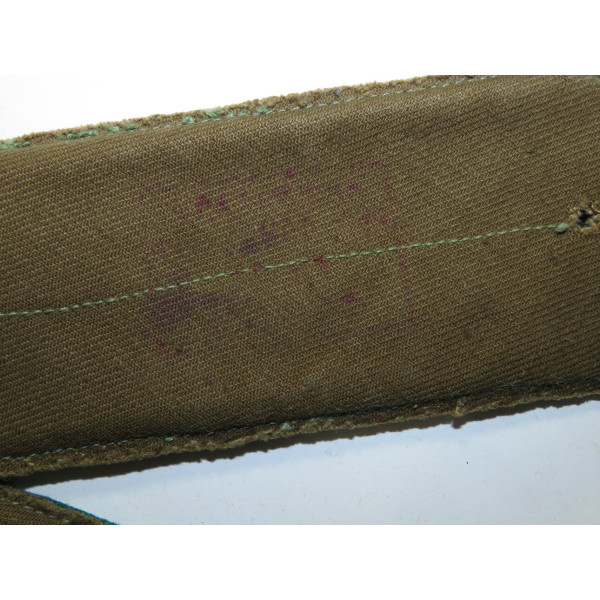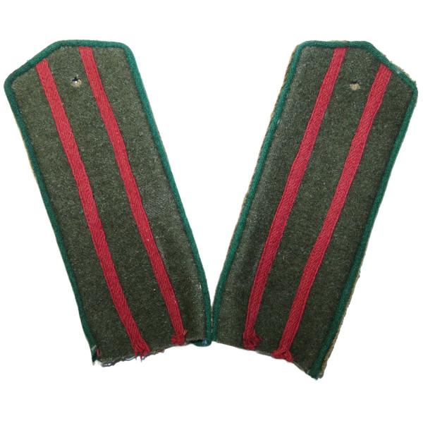 Field shoulder boards for senior officers of the NKVD border troops, 1943 pattern, made of khaki cloth with two red stripes and green border piping. Depot condition pair stitched together, with no rank stars fitted due to unused state. Suitable for ranks from major to colonel. A very rare field shoulder board example of RKKA border units.
