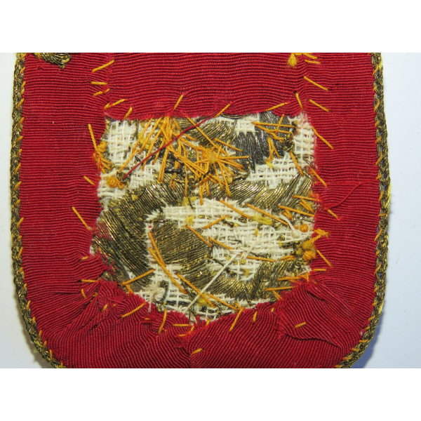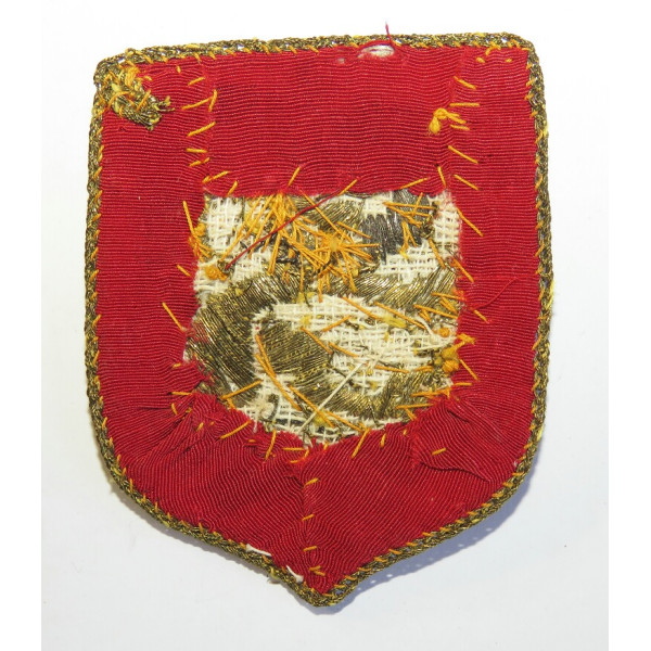 Finnish Waffen-SS volunteers arm shield first type embroidered in gold bullion on red backing featuring the Finnish coat of arms with a lion holding a sword overall condition excellent