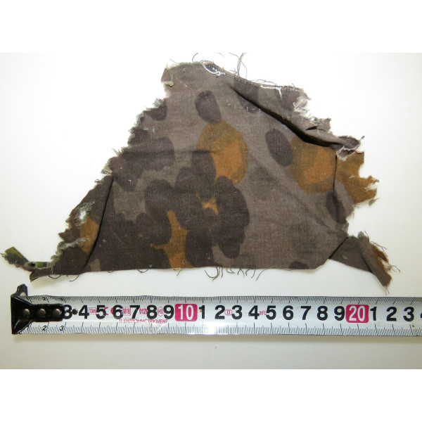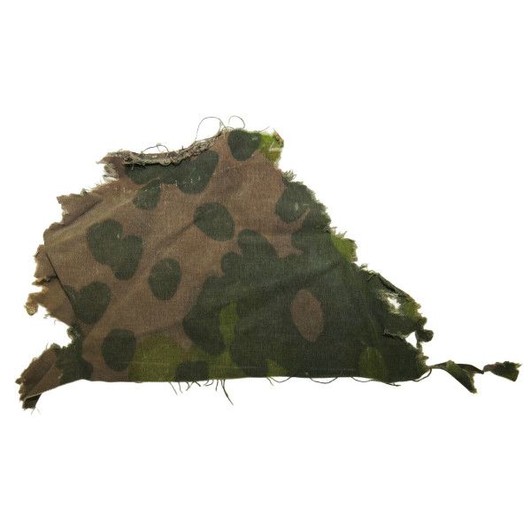 Fragment of camouflage fabric associated with SS formations, including the SS-VT and later the Waffen-SS. Executed in the Platanenmuster camouflage pattern. This fragment was once part of a camouflage anorak. The fabric remains in good condition, with well-preserved colors and pattern.