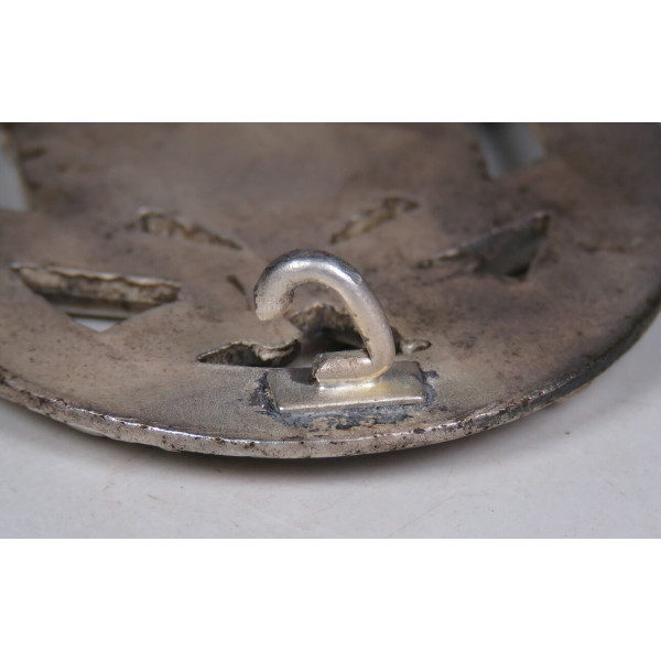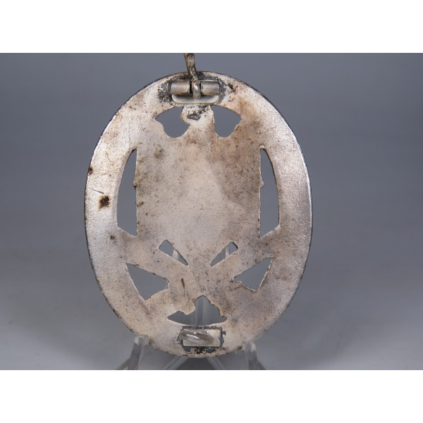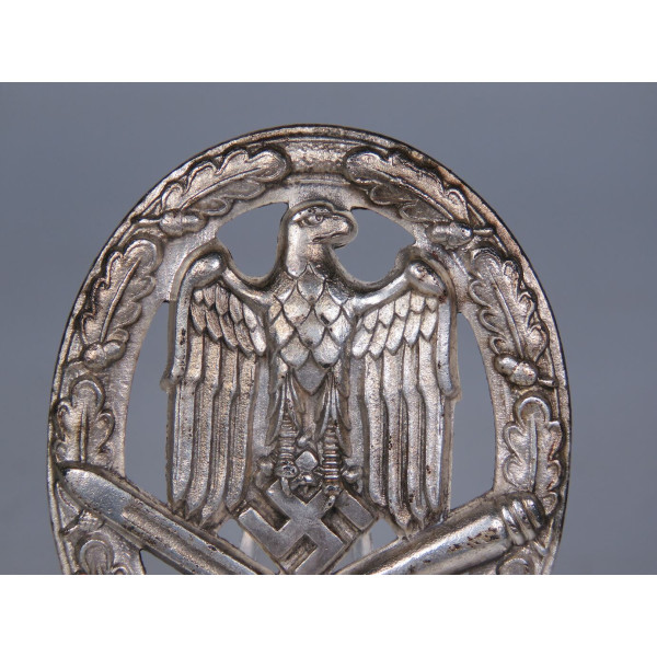 General Assault Badge made of zinc with a thick silver finish. Classified in catalogues as variant 1.24.3, maker unknown. This type is extremely rare. Excellent condition with authentic traces of wear and well-preserved relief details.