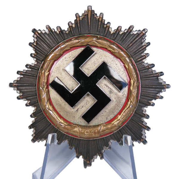 German Cross in Gold, instituted in 1941. The pin is marked with code “1”, corresponding to manufacturer Deschler & Sohn, Munich, maker code PKZ 1.