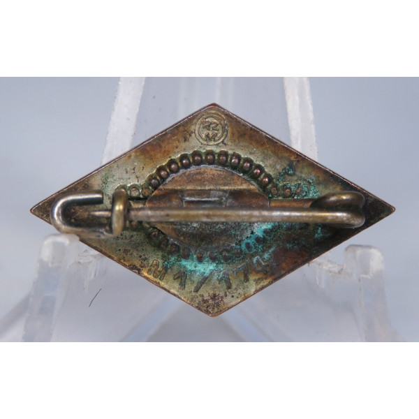 A rare Hitlerjugend membership badge with distinctive opaque carrot-colored enamel. The reverse is marked RZM M1/174 for Petz & Lorenz, Unterreichenbach, an extremely uncommon manufacturer for these badges, which greatly increases its collector’s value. Excellent condition, with intact enamel and original fully functional pin.