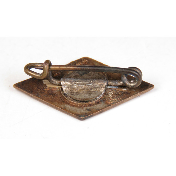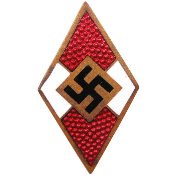 Hitlerjugend membership badge marked on the reverse RZM M1/44, corresponding to manufacturer C. Dinsel, Berlin-Waidmannslust. Pleasant patina and minor signs of wear are present. Enamel and finish remain in excellent condition.