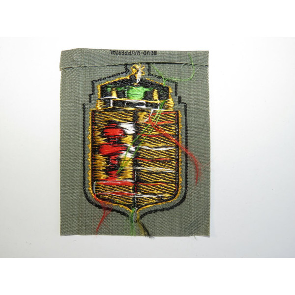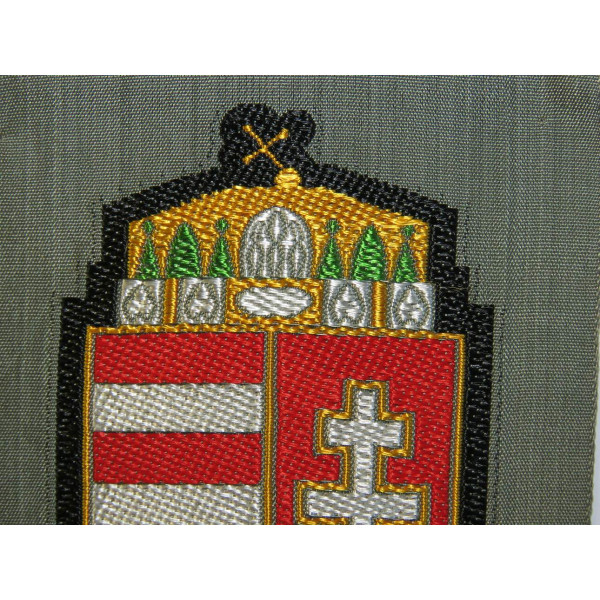 Sleeve shield of Hungarian volunteers serving in the Wehrmacht. Featuring Hungarian national symbolism. Produced using BeVo jacquard weaving. Excellent condition.