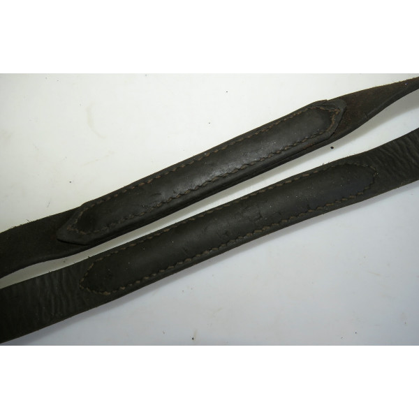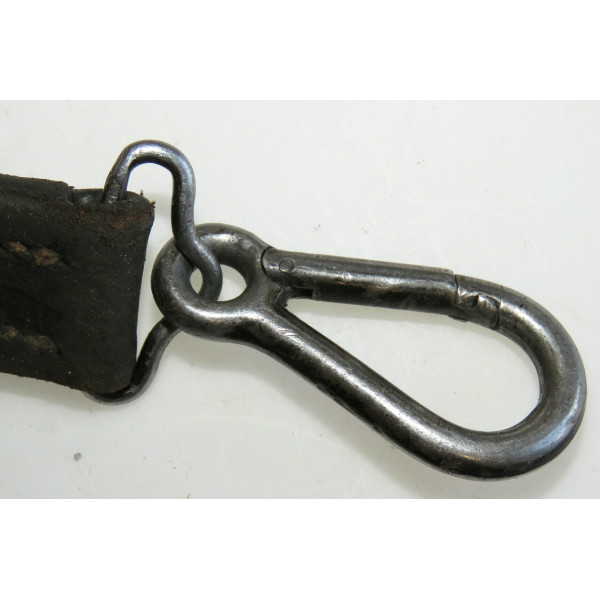 Leather strap for MG34 or MG42 machine guns made of dense leather in excellent condition with visible signs of field use the leather remains soft flexible and without cracks metal fittings bear Waffenamt markings wear is consistent with field use overall condition excellent