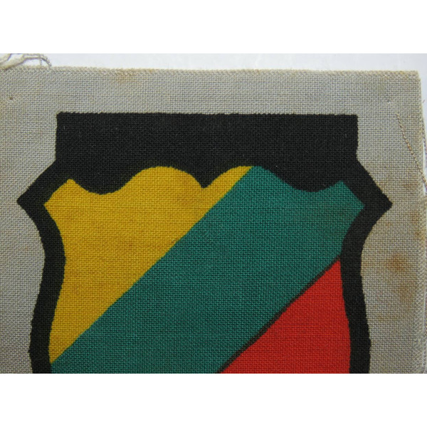 Lithuanian police sleeve shield of the Third Reich, Litauische Schutzmannschaft-Polizei-Bataillone. Printed on cotton fabric. No signs of use.