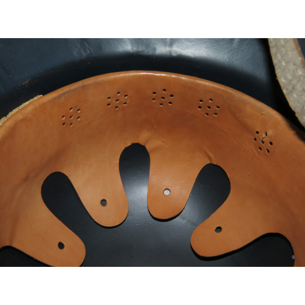 The helmet is in mint condition, showing no signs of wear. The metal and paint are perfectly preserved, the surface without abrasions, and the decal absolutely sharp. Inside is the original liner made of soft leather.