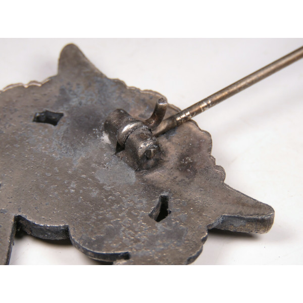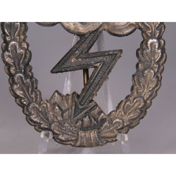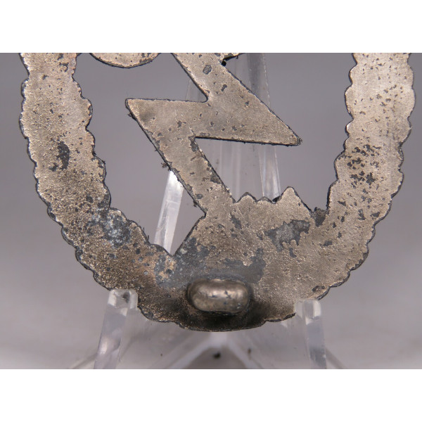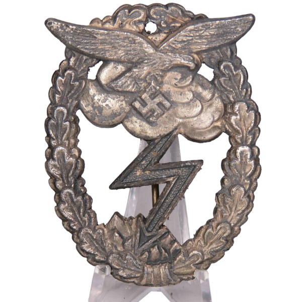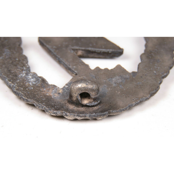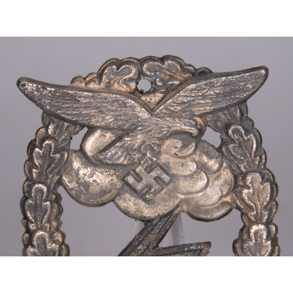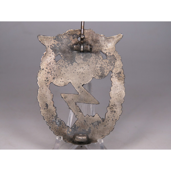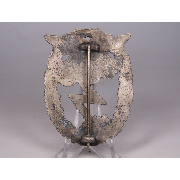 Luftwaffe Ground Assault Badge. Manufactured by Arno Wallpach. Late-war type, struck in one piece from zinc with a silver finish. The badge shows natural age-related darkening and remains in excellent condition. No repairs or alterations.