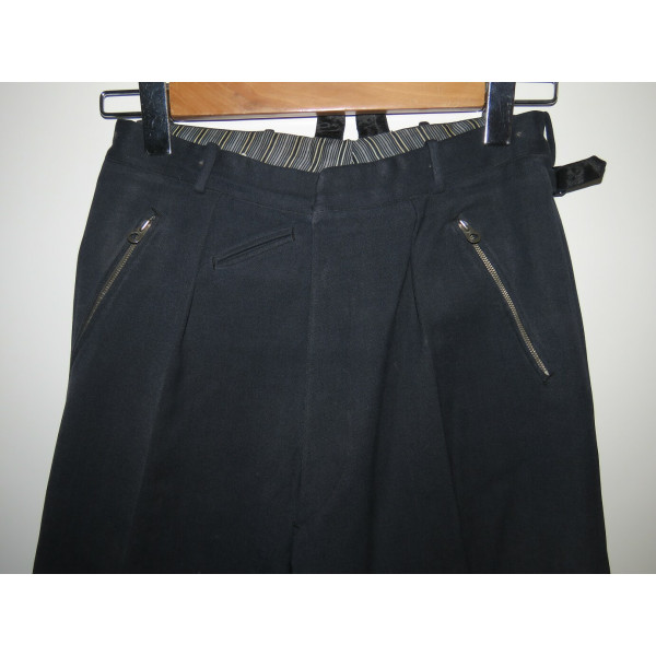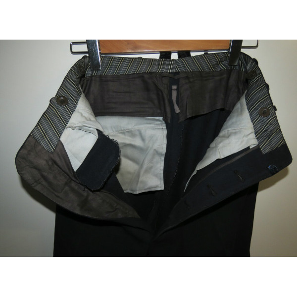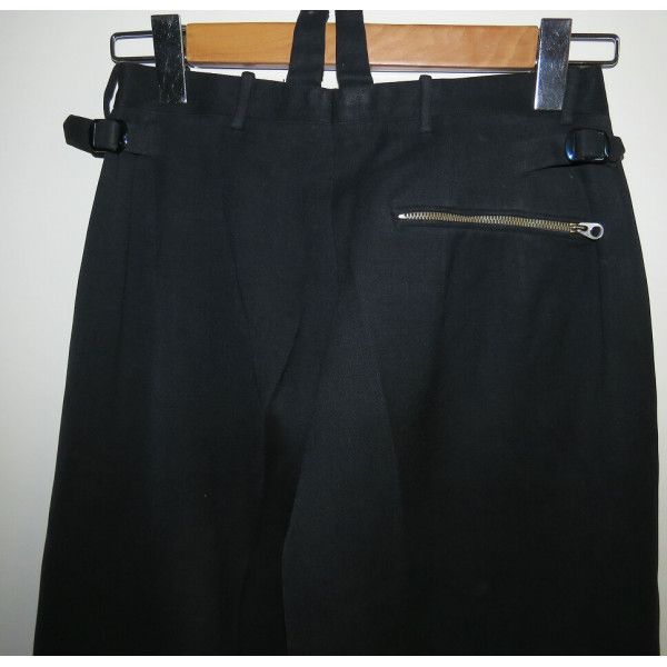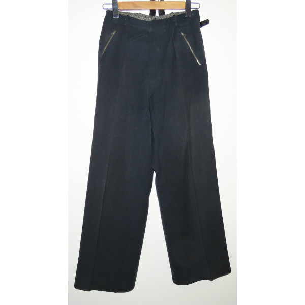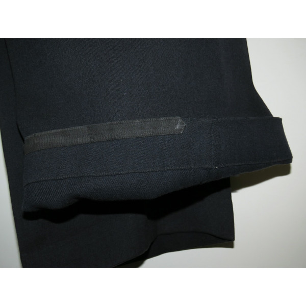 Straight-cut Luftwaffe parade trousers made of high-quality diagonal merino gabardine. Tailor-made, fully conforming to the fashion and style of the period. Side zippers are metal, sewn in according to the design standards of the time. The trousers show signs of wear but have no losses or damage. Overall length from the waist is approximately 105 cm, waist circumference 80 cm. An excellent example of Luftwaffe officer’s formal uniform.