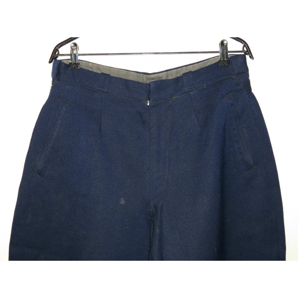 M35 Soviet NCO's or militia blue trousers without piping for peace time. Rough diagonal tricot wool. Good worn condition. Factory label sewn on the liner. Size 105 waist 100 length.