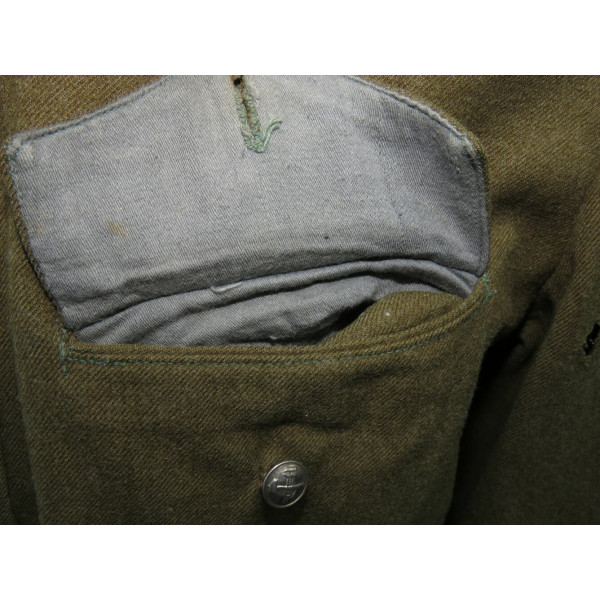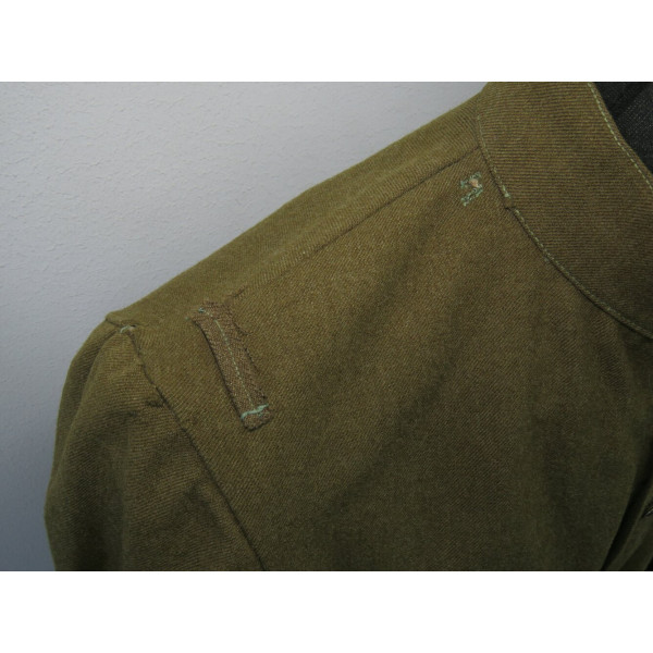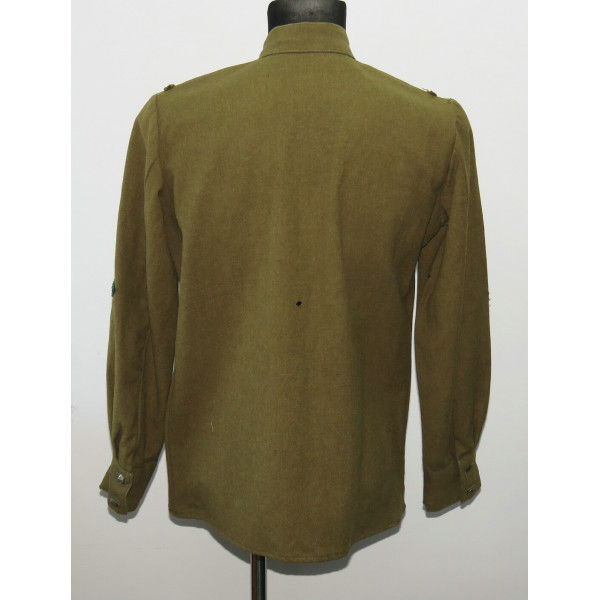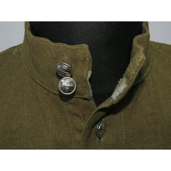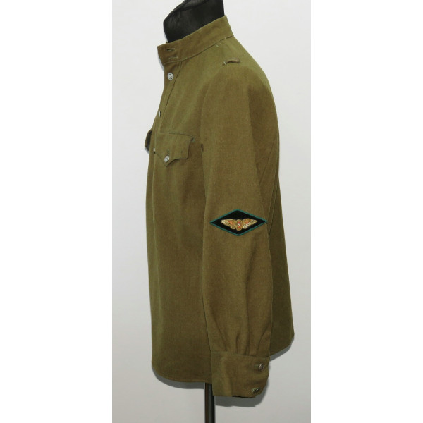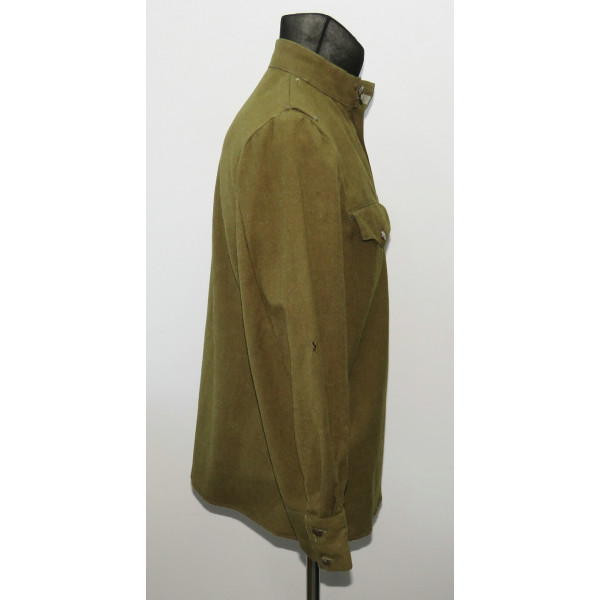 Model 1943 gymnastiorka made of wool diagonal fabric from early Entente supply stock delivered in 1919 to Vladivostok and Arkhangelsk. Large quantities were stored and used during the pre-war period and throughout the war.
