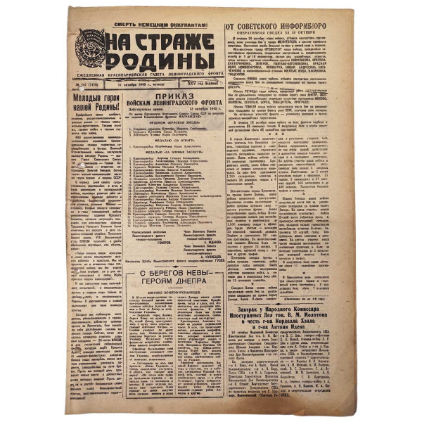 On October 20, People's Commissar for Foreign Affairs V. M. Molotov hosted a breakfast for Cordell Hull (U.S. Secretary of State) and Anthony Eden (British Foreign Secretary).