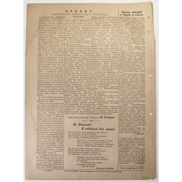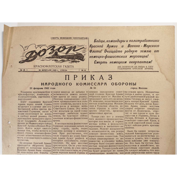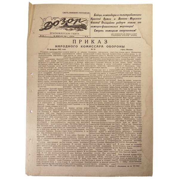 On Red Army and Navy Day, February 23, the Navy newspaper Dozor published Order No. 55 of the People’s Commissar of Defense, Joseph Stalin.