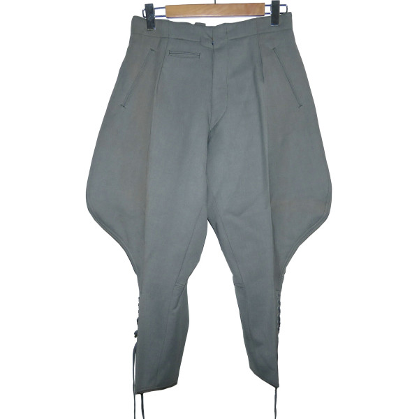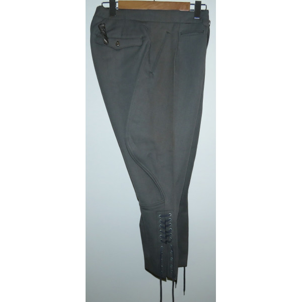 Officer breeches from the Third Reich period, used by the Wehrmacht or Waffen-SS, made of high-quality dense grey gabardine. Measurements: waist 86 cm, side length 93 cm. Excellent condition, no damage.