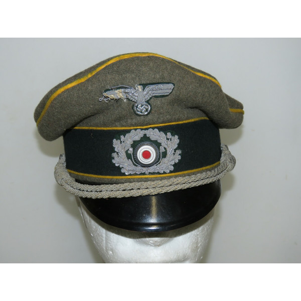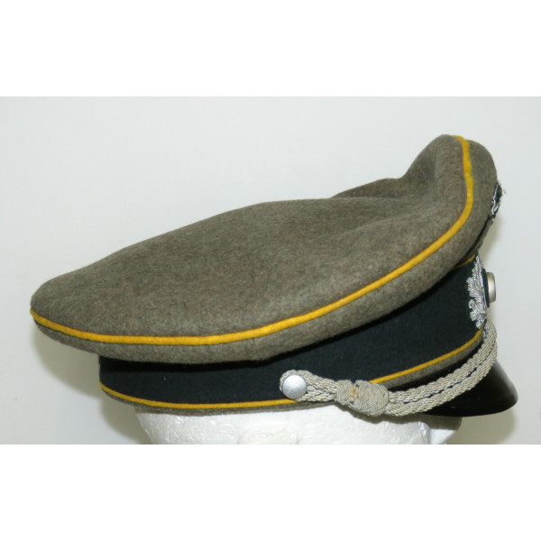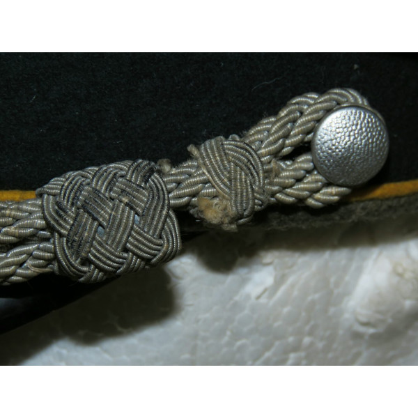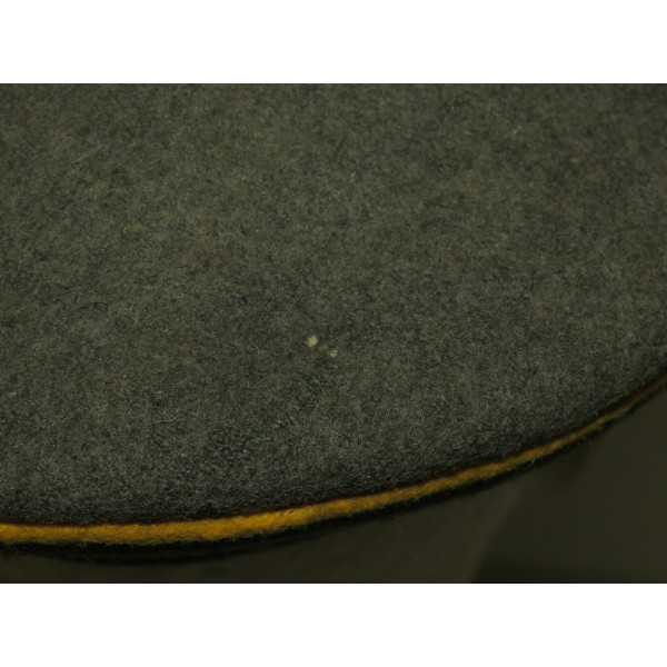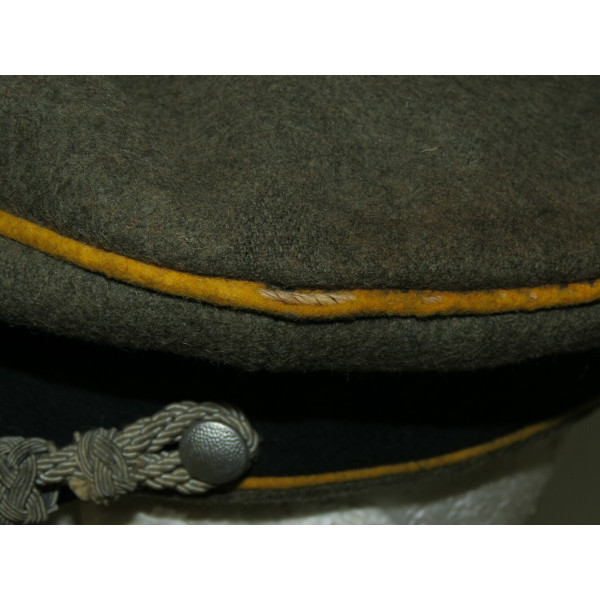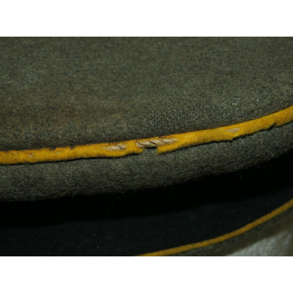 Frontline-used officer’s visor cap for Wehrmacht Panzeraufklärung, showing clear signs of field wear. Manufactured in the city of Bromberg, known today as Bydgoszcz in Poland.