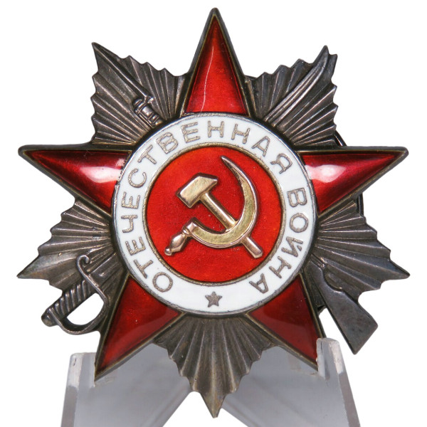Order of the Patriotic War 2nd Class LMD, Variant 2, from the third production batch of the Leningrad Mint, typically found within the serial range 100000–135000
