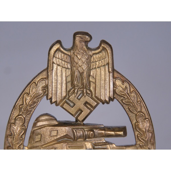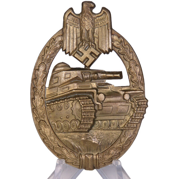 Panzer Assault Badge in bronze grade, manufactured by Hermann Aurich. Late-war production made of zinc. The obverse is in perfect condition — no wear or damage, with fully preserved original finish. The badge looks even better in person than in the photos. Mint collector condition.