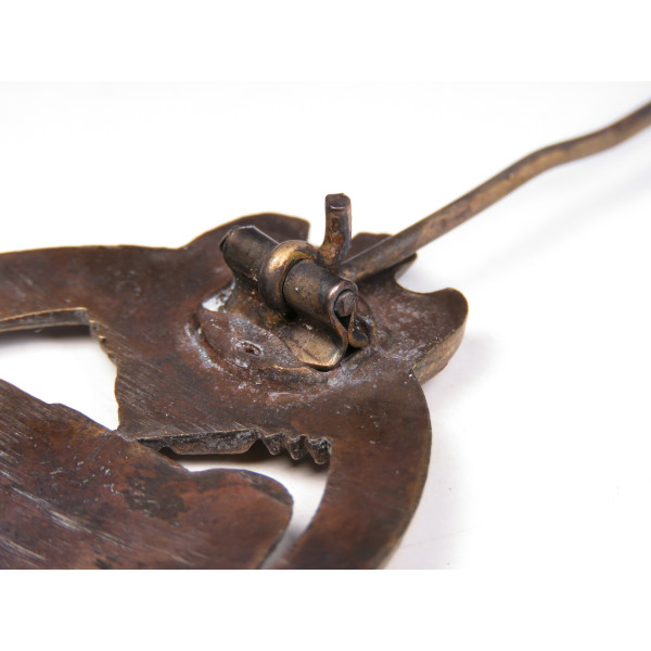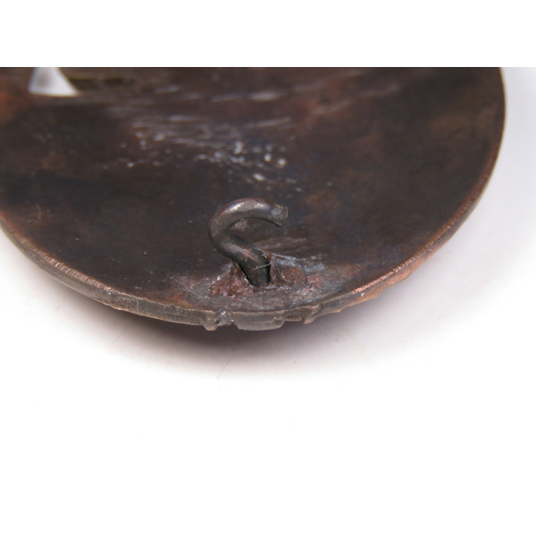 Panzerkampfabzeichen in bronze grade, manufactured by Steinhauer & Lück. Classified as type 1.4.9 according to Philippe de Bock’s reference The German Panzer Assault Badge of World War II. Features a horizontally crimped hinge setup. Made of zinc, in mint condition with only minor wear on the raised details. The metal has developed a slight reddish hue over time.