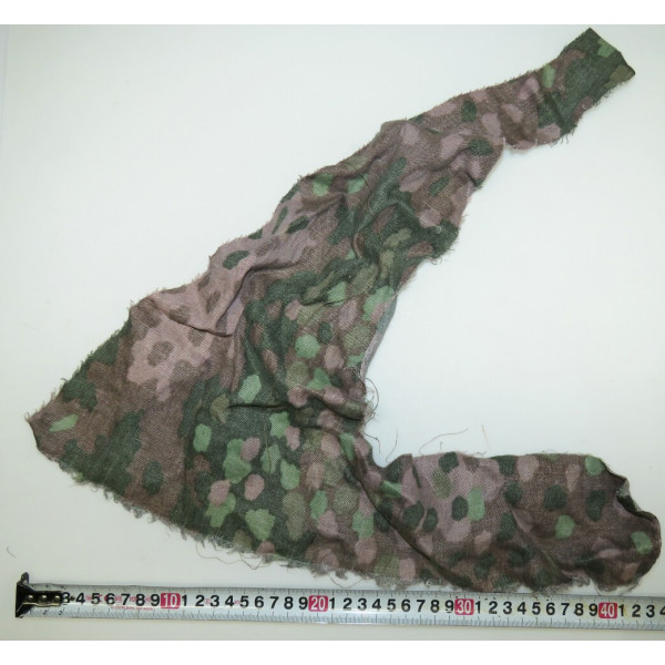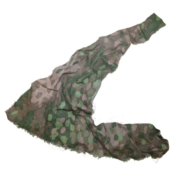 Fragment of soft cotton camouflage fabric featuring the Erbsenmuster (Dot 44) camouflage used by the Waffen-SS from 1944. This type of camouflage was most commonly used for jumpsuits and late-war SS uniforms. Excellent condition with typical texture and coloration of the late production period.