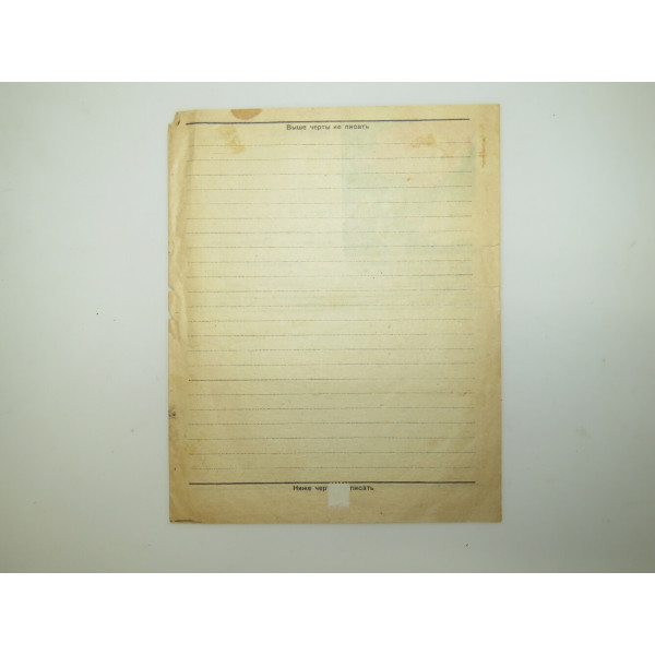 Printed free military letter form used by Red Army soldiers to send correspondence through field post channels. The upper part features an agitational illustration by artist N. Lyapunov: a red battle flag with portraits of Lenin and Stalin, Soviet troops in attack, and tracer lines in the night sky. A patriotic verse typical of frontline propaganda accompanies the image. The form includes standard fields for recipient, sender and field post number, along with lined space for writing. The imprint at the bottom lists the “Krasny Proletary” printing house and the order number. A characteristic example of frontline printed material from the 1943–1945 period.