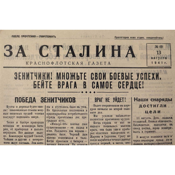 For Stalin. Red Fleet Newspaper