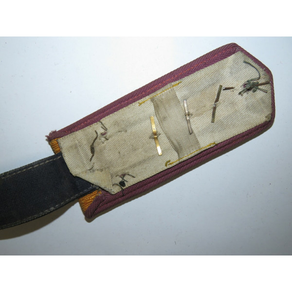 Shoulder board of the 1943 RKKA pattern with silk field, crimson piping and crimson longitudinal stripe, which are infantry colors