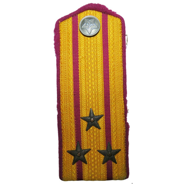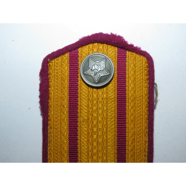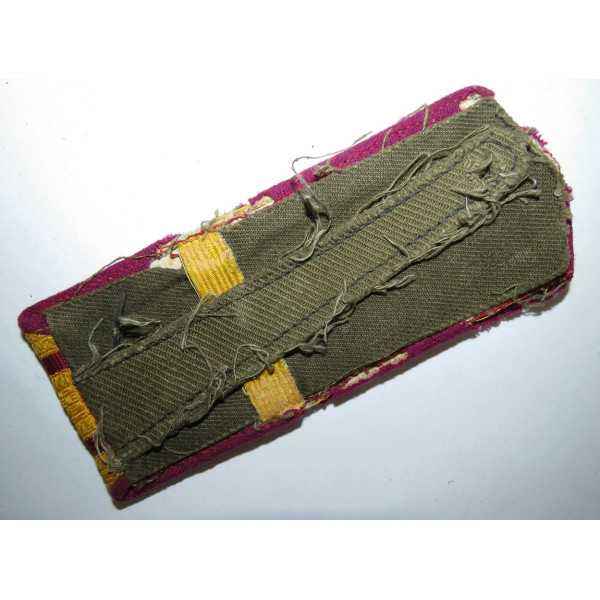 Shoulder board of the RKKA 1943 pattern with yellow silk field, two crimson longitudinal stripes and crimson piping