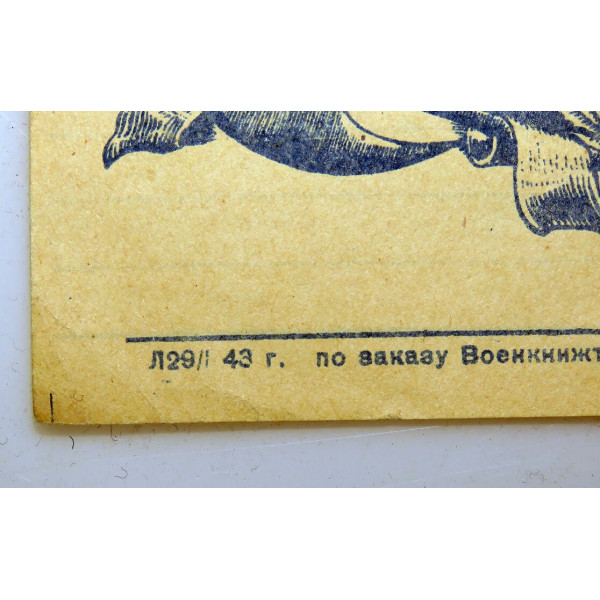 Original Red Army field letter form from 1943 bearing the slogan “Death to the German occupiers!” and a Stalin quote: “We can and must cleanse Soviet soil of Hitlerite filth.” The lower section features an image of Alexander Nevsky with the motto “Who comes to us with a sword shall die by the sword.” Produced by order of Voenknigtorg, Typo-Lith. Gosizdat, priced at 8 kopeks, order No. 92. Good condition.