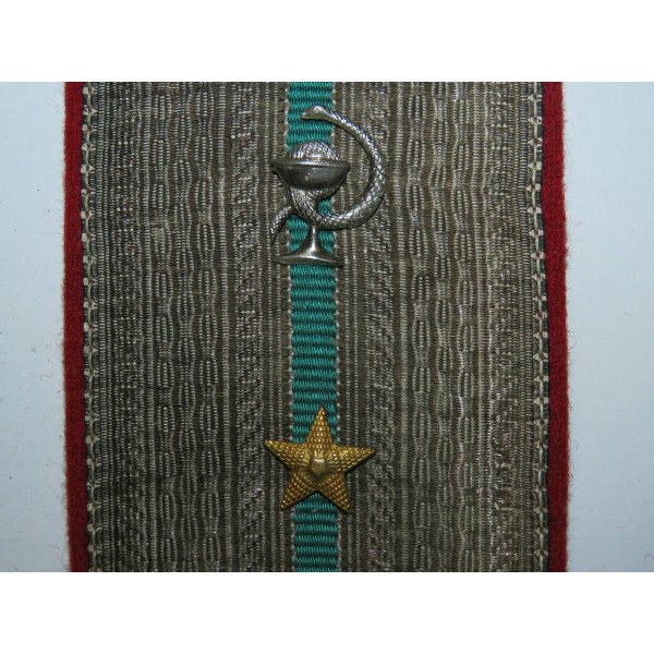 Shoulder board of the 1943 pattern for a captain of the Navy medical service, with a silver field and the regulation medical-service stripe