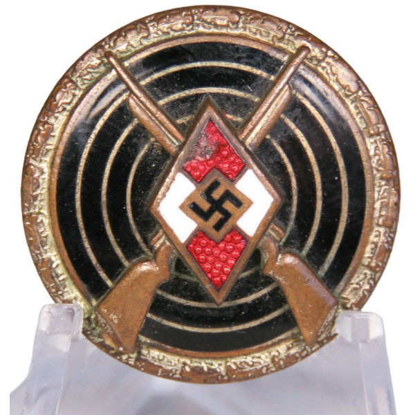 The badge shows signs of wear and has a small enamel chip on the diamond, but overall remains well preserved. It was awarded to Hitler Youth members for high proficiency in shooting competitions or sniper training programs. A historically important piece illustrating the standards of marksmanship within the Hitler Youth organization.