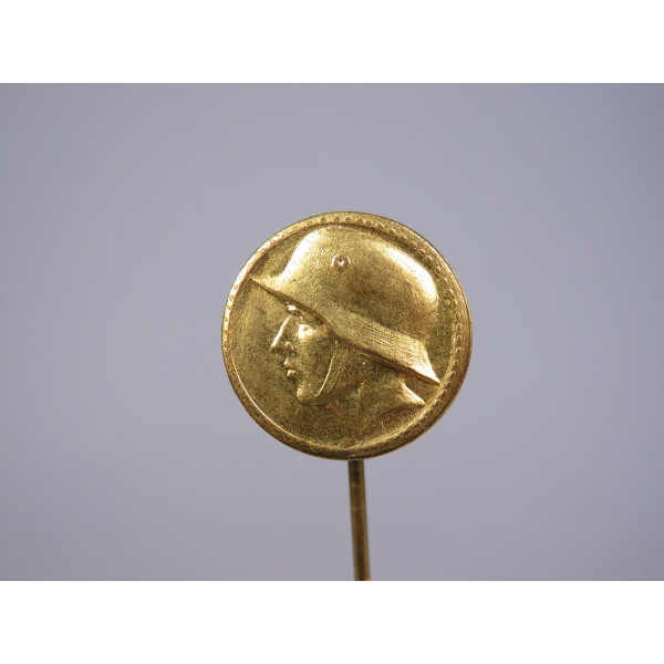 17 мм знак с изображением немецкого солдата в каске. Золоченая бронза