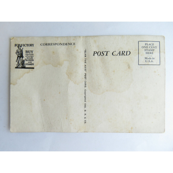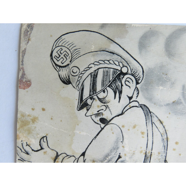 Состояние с заметными следами времени, пятна и складки. Яркий пример военной пропаганды периода Второй мировой войны.