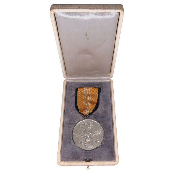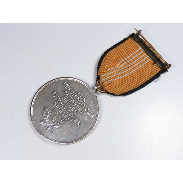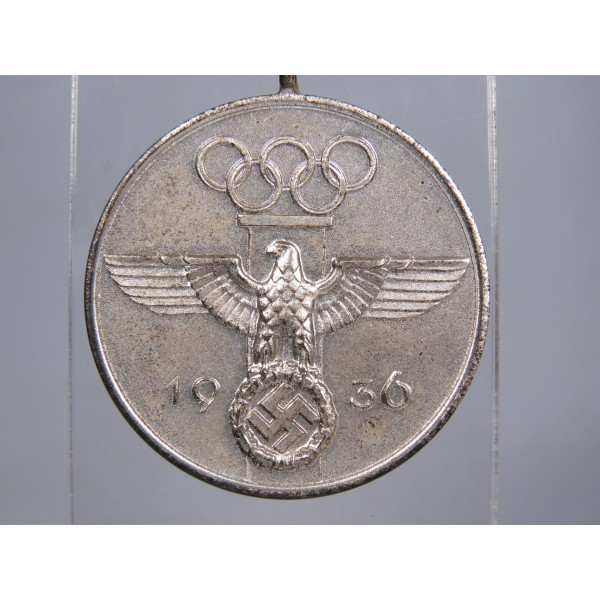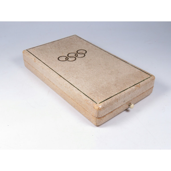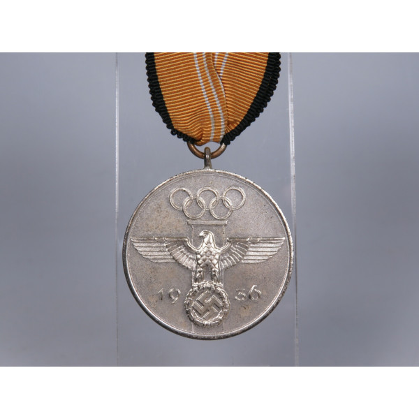 Медаль за Олимпийские игры 1936 года из посеребрённого железа, с лентой и застёжкой, в оригинальном футляре, состояние отличное.