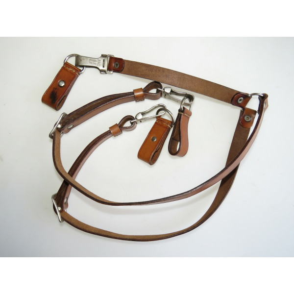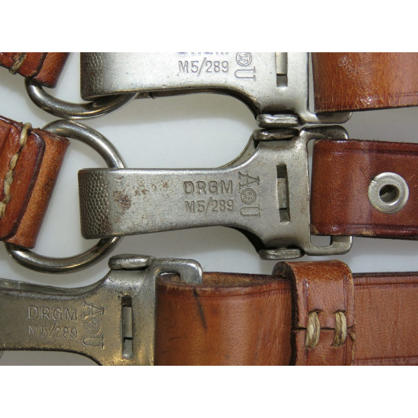 Редкая двойная черезплечная портупея штурмовых отрядов СА der NSDAP, выполненная из светлой тонкой кожи, характерной для ранних партийных комплектов. Конструкция включает две плечевые лямки с регулируемыми элементами крепления и предназначена для ношения с поясным ремнём.