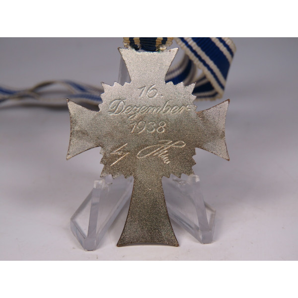 На аверсе — надпись „Der Deutschen Mutter“, на реверсе — дата учреждения награды „16. Dezember 1938“ и факсимиле подписи Адольфа Гитлера. Один из наиболее знаковых орденов гражданского типа в системе наград Третьего рейха, в превосходной сохранности.