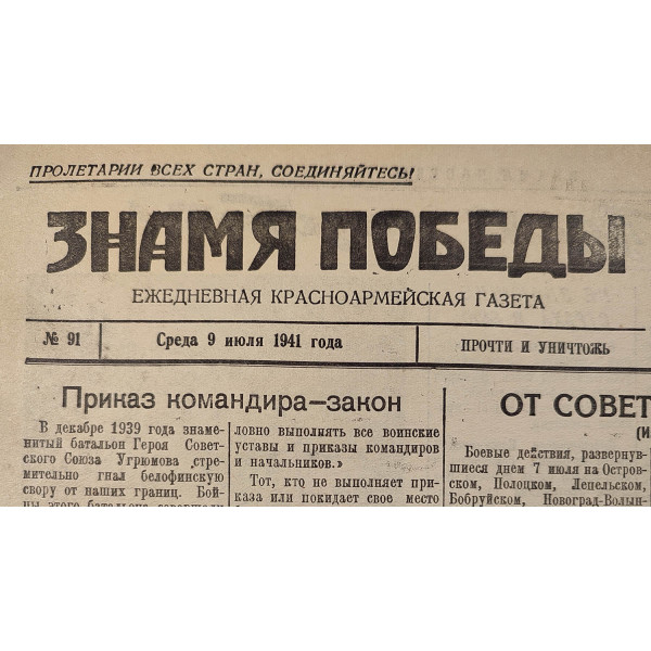 № 91 Среда 9 июля 1941 года
