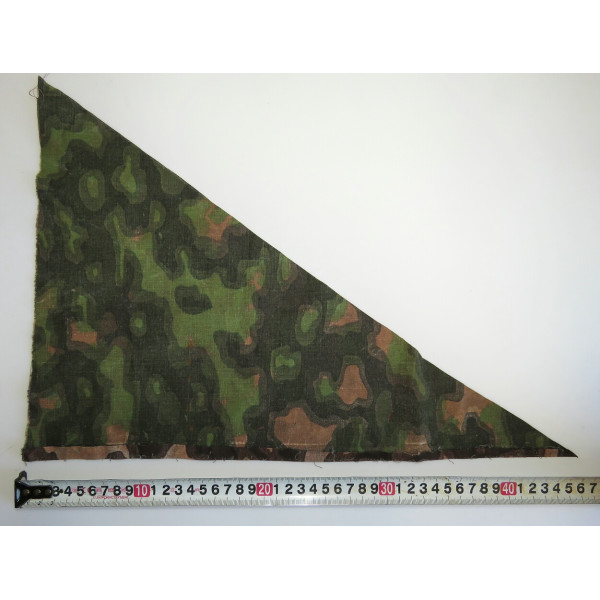 Оригинальный кусок ткани с редким дымчатым камуфляжем Rauchtarnmuster, применявшимся в пошиве униформы частей СС. Отличается выразительными, насыщенными цветами и полным отсутствием следов использования. Поверхность ткани чистая, без повреждений и выцветания. Ценный и редкий экземпляр аутентичного камуфляжа конца войны