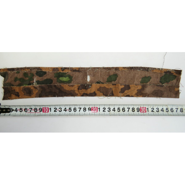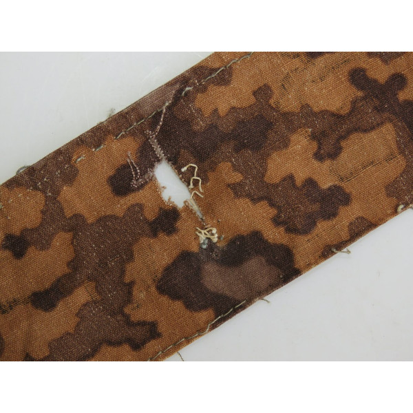 Фрагмент ткани плащ-палатки Waffen-SS с рисунком Eichenlaubmuster, поздний выпуск. Характерная цветовая гамма дубового леса.