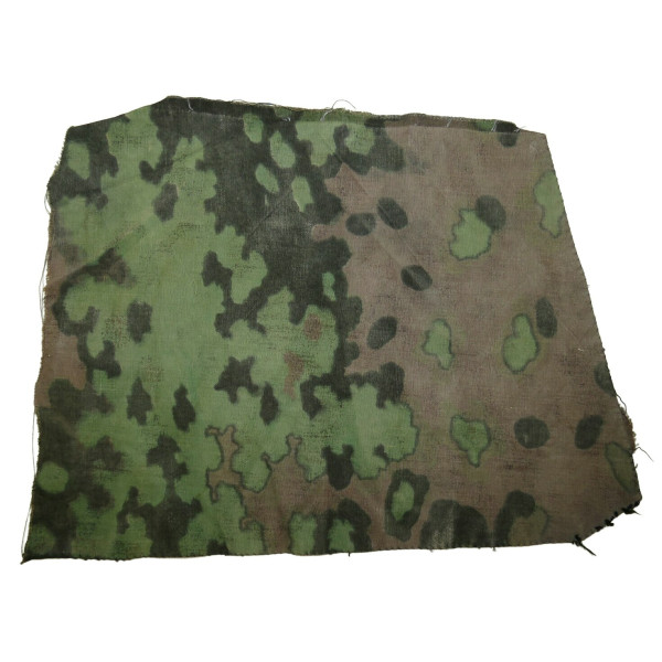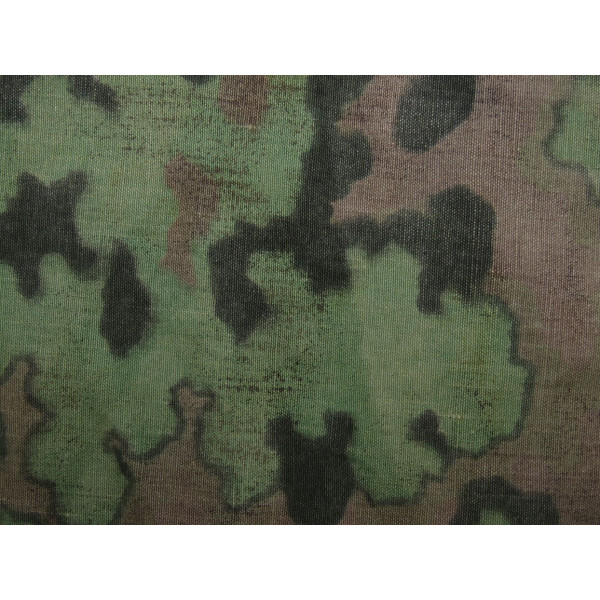 Кусок оригинальной камуфлированной ткани Waffen-SS в расцветке Eichenlaubmuster (дубовый лист), сохранившийся со следами полевого использования. Рисунок различим, цвета частично выцвели, но остаются читаемыми. Типичная структура материала свидетельствует о принадлежности к униформе или палаточному оснащению. Хорошо подходит для коллекционного или исследовательского анализа.