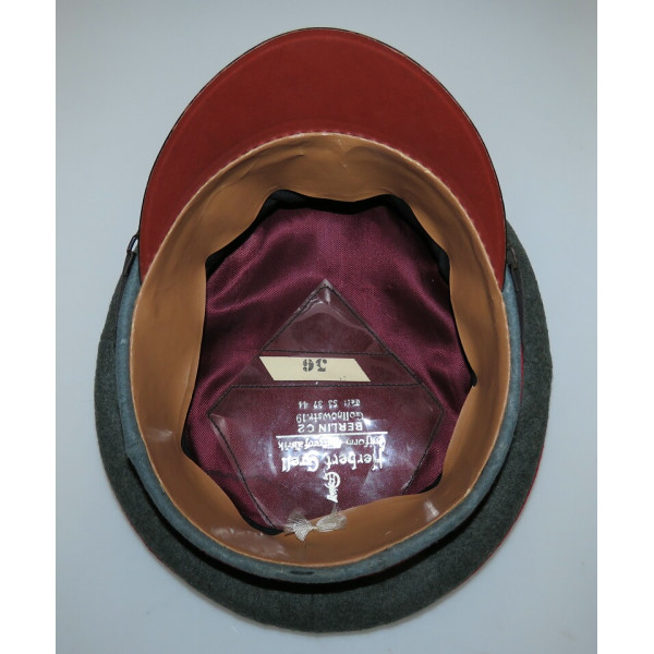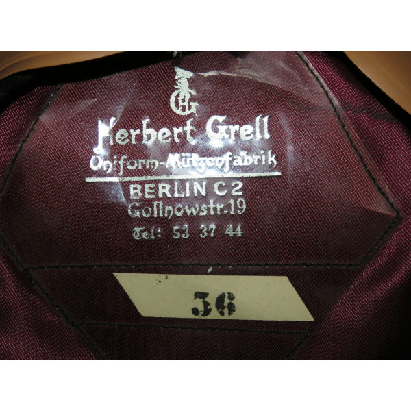 На донце подкладки установлен целлулоидный ромб с надписью Herbert Grell Uniform-Mützenfabrik, Berlin C2, Gollnaufstrasse 19, телефон 533744