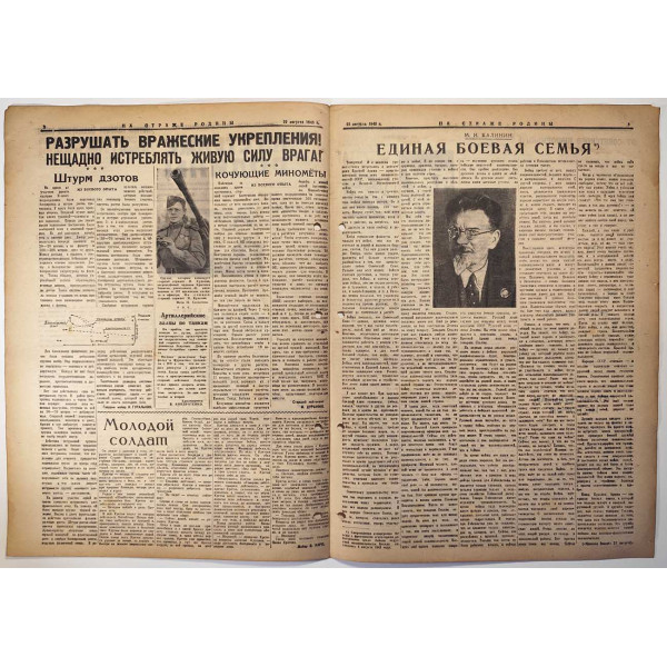 Большая статья, посвящённая единству советского народа, героизму и сплочённости фронта и тыла.