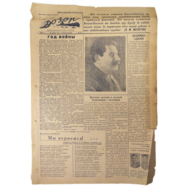 Газета выпущенная 22 июня 1942 года. Ровно год войны