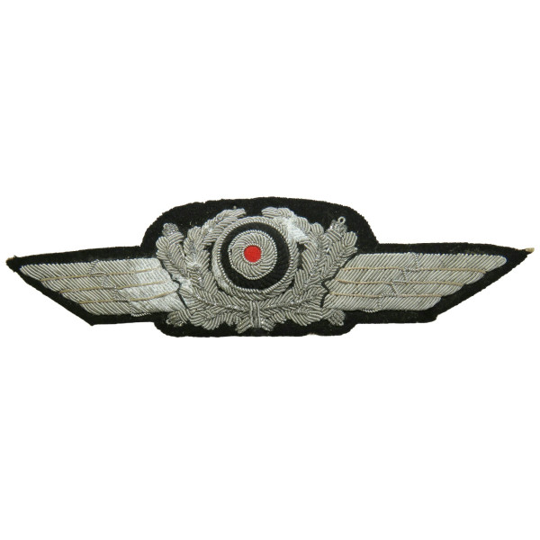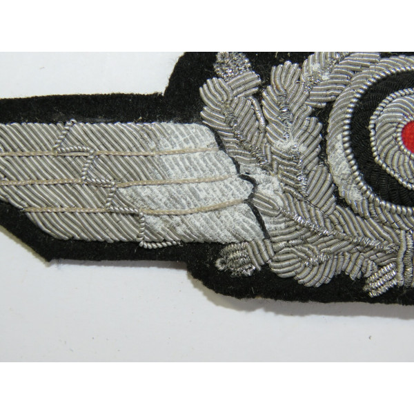 Венок с кокардой для фуражки Люфтваффе, вышитый алюминиевой нитью на чёрном сукне. Предназначен для крепления на фуражку Люфтваффе.